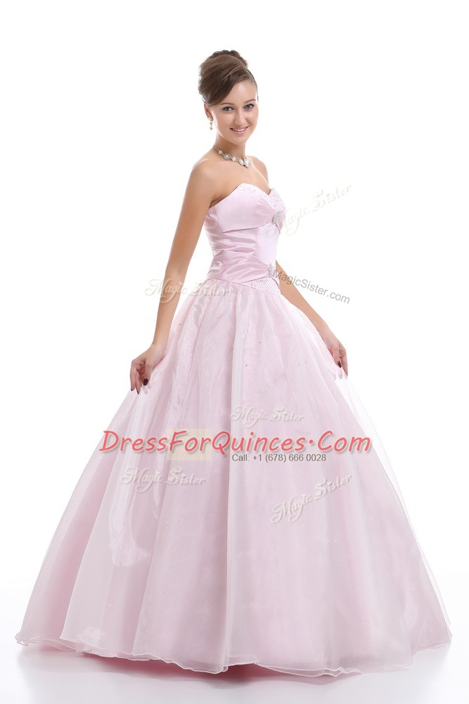 Simple Sleeveless Lace Up Floor Length Beading 15th Birthday Dress