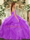 Simple Sleeveless Tulle Floor Length Lace Up Sweet 16 Quinceanera Dress in Lavender with Beading and Ruffles