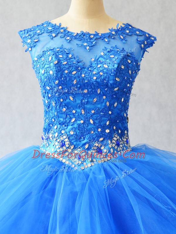 Sleeveless Brush Train Beading and Lace Lace Up Quince Ball Gowns