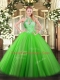 Sleeveless Tulle Floor Length Lace Up Quince Ball Gowns in with Sequins