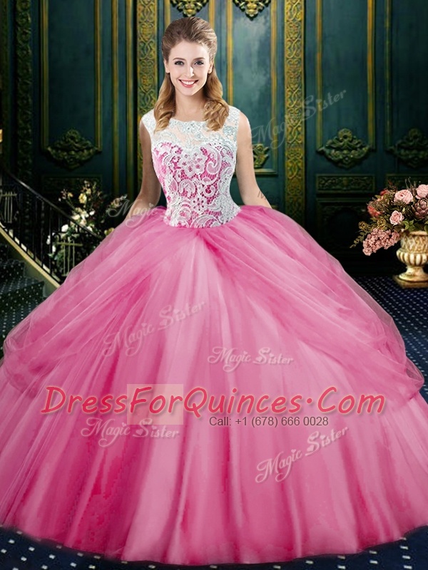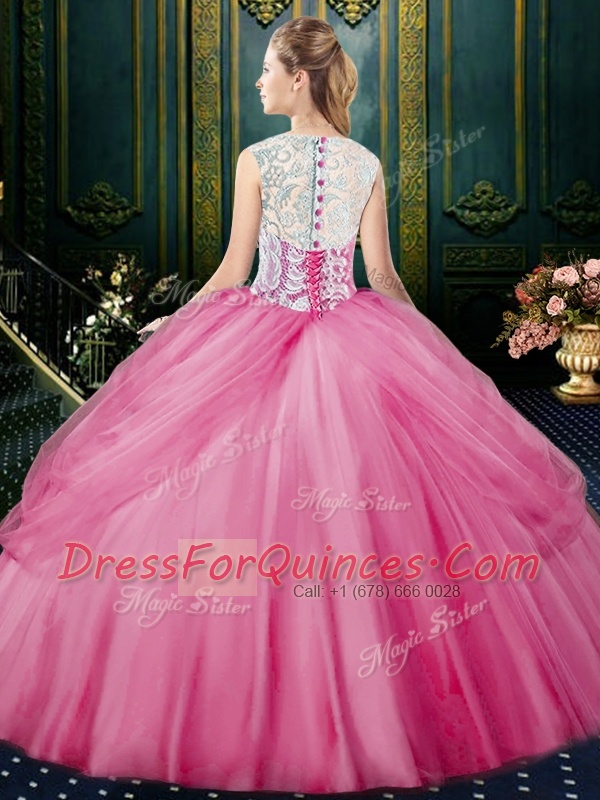 Spectacular Scoop Sleeveless Tulle Sweet 16 Dresses Lace and Pick Ups Zipper
