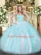 Stylish Aqua Blue Tulle Zipper Straps Sleeveless Floor Length Quince Ball Gowns Beading and Ruffles