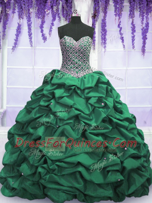 Stylish Sweetheart Sleeveless Taffeta 15 Quinceanera Dress Beading and Sequins and Pick Ups Lace Up