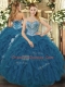 Sumptuous Floor Length Lace Up 15 Quinceanera Dress Teal for Military Ball and Sweet 16 and Quinceanera with Beading and Ruffled Layers