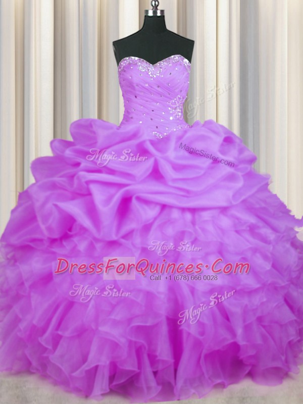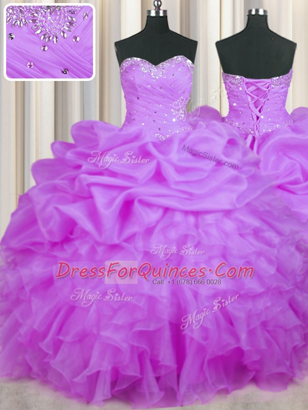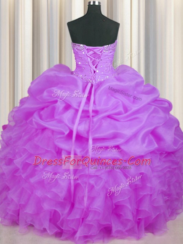 Sumptuous Purple Lace Up Sweet 16 Dresses Beading and Ruffles and Pick Ups Sleeveless Floor Length