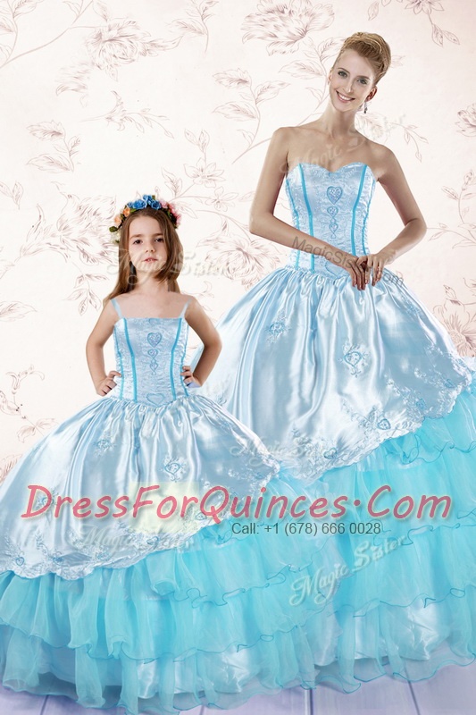 Super Sleeveless Embroidery and Ruffled Layers Zipper Quinceanera Dress