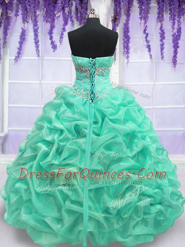 Sweet Floor Length Turquoise Quince Ball Gowns Organza Sleeveless Beading