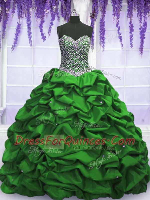 Taffeta Sleeveless Floor Length Quinceanera Dresses and Beading and Sequins and Pick Ups
