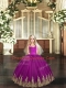 Tulle Halter Top Sleeveless Lace Up Embroidery 15 Quinceanera Dress in Fuchsia