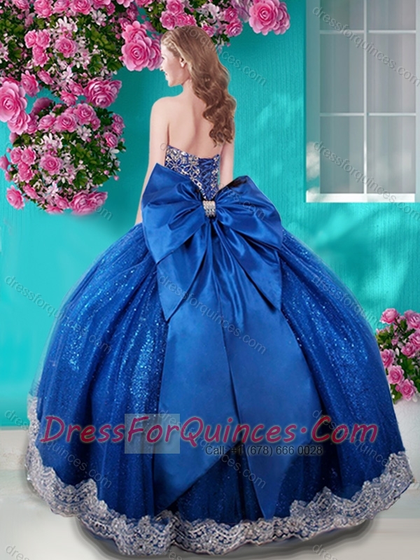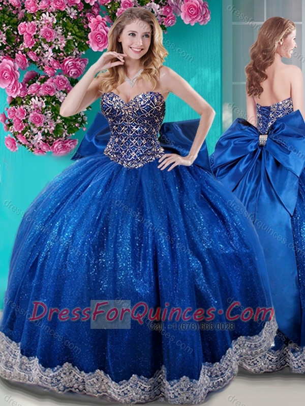 Unique Ball Gown Sequins Bowknot and Beaded Royal Blue Quinceanera Dress with Sweetheart