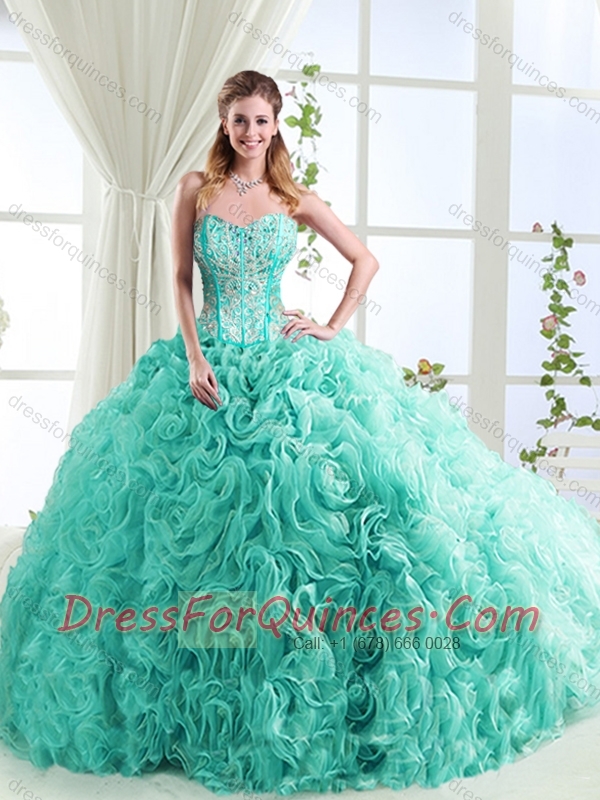 Visible Boning Rolling Flowers Detachable Quinceanera Dresses with Beading