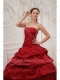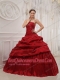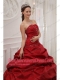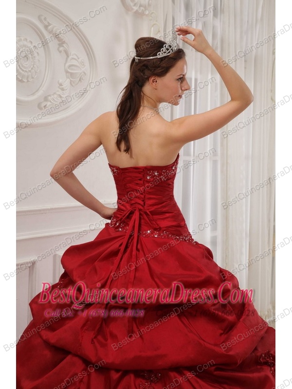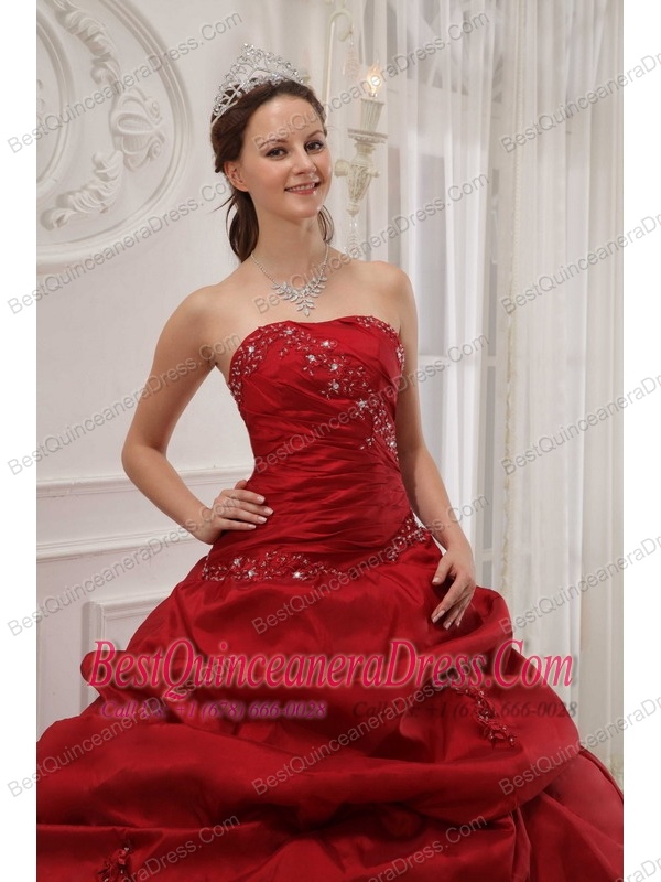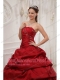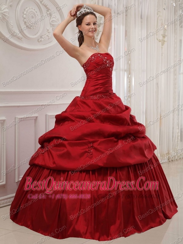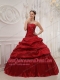 Wine Red Ball Gown Strapless Floor-length Taffeta Ruffles Quinceanera Dress