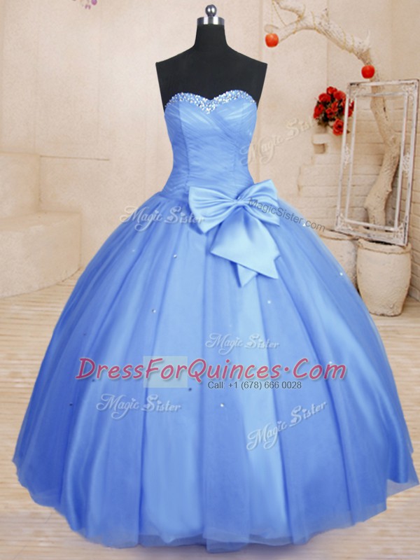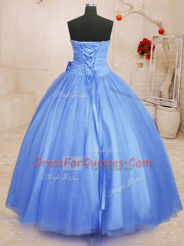 Wonderful Ball Gowns Quinceanera Gown Light Blue Sweetheart Tulle Sleeveless Floor Length Lace Up
