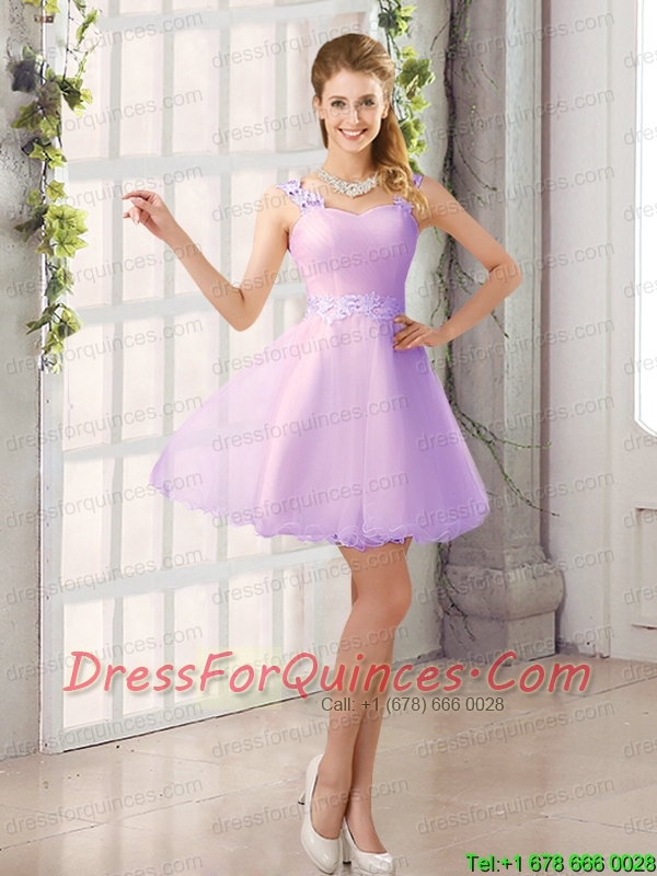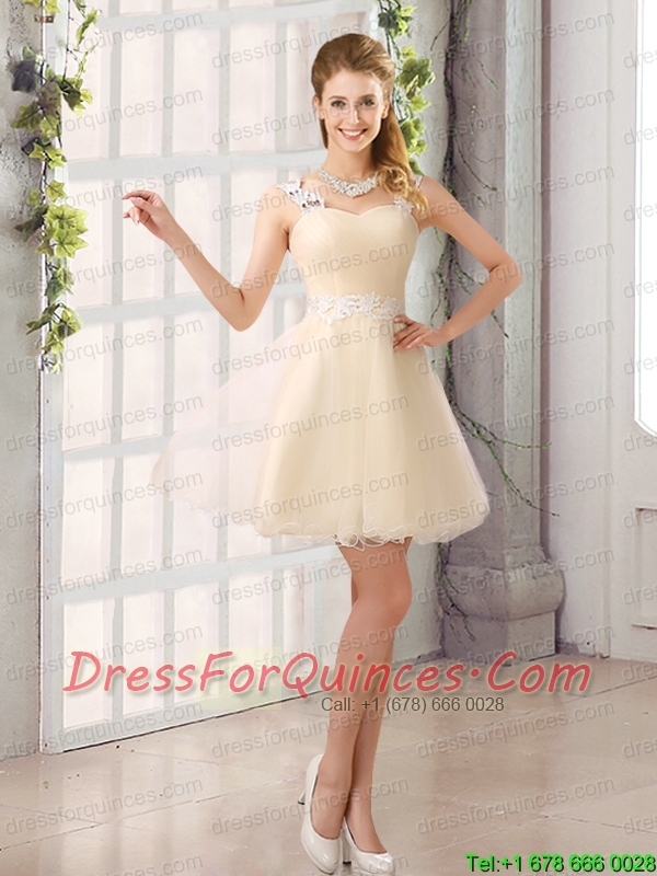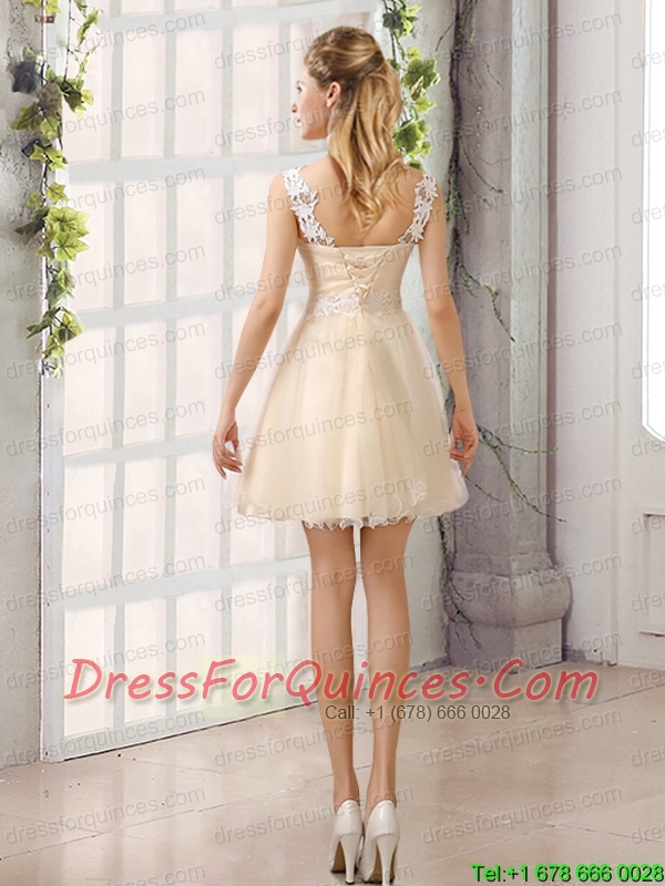 2015 Decent Straps Appliques Christmas Party Dress with Mini Length