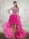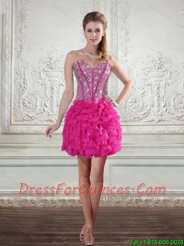2015 Hot Pink High Low Sweetheart Christmas Party Dresses with Beading and Ruffled Layers