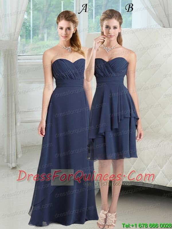 2015 New Style Sweetheart Ruching Christmas Party Dress in Navy Blue