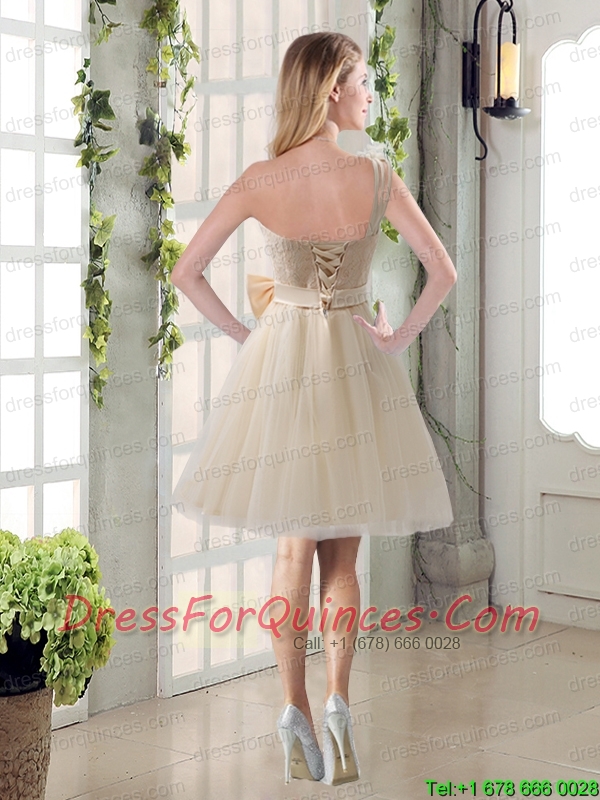 2015 Princess One Shoulder Bowknot Lace Christmas Party Dresses in Champagne