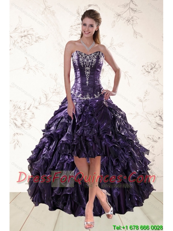 2015 Purple High Low Christmas Party Dresses for Spring