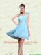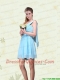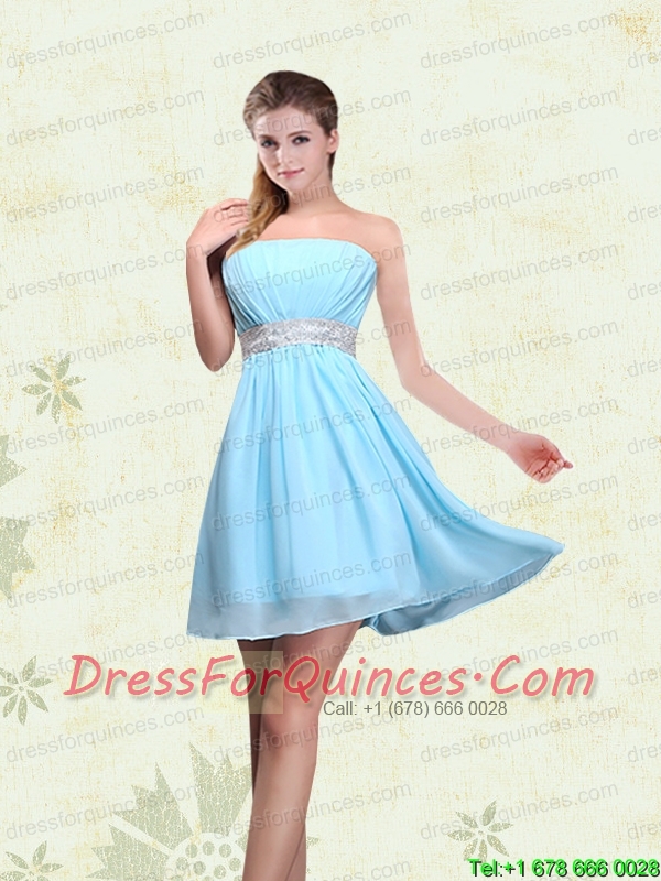 2015 Ruching Chiffon Aqua Blue Christmas Party Dresses with Mini Length