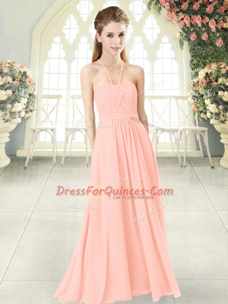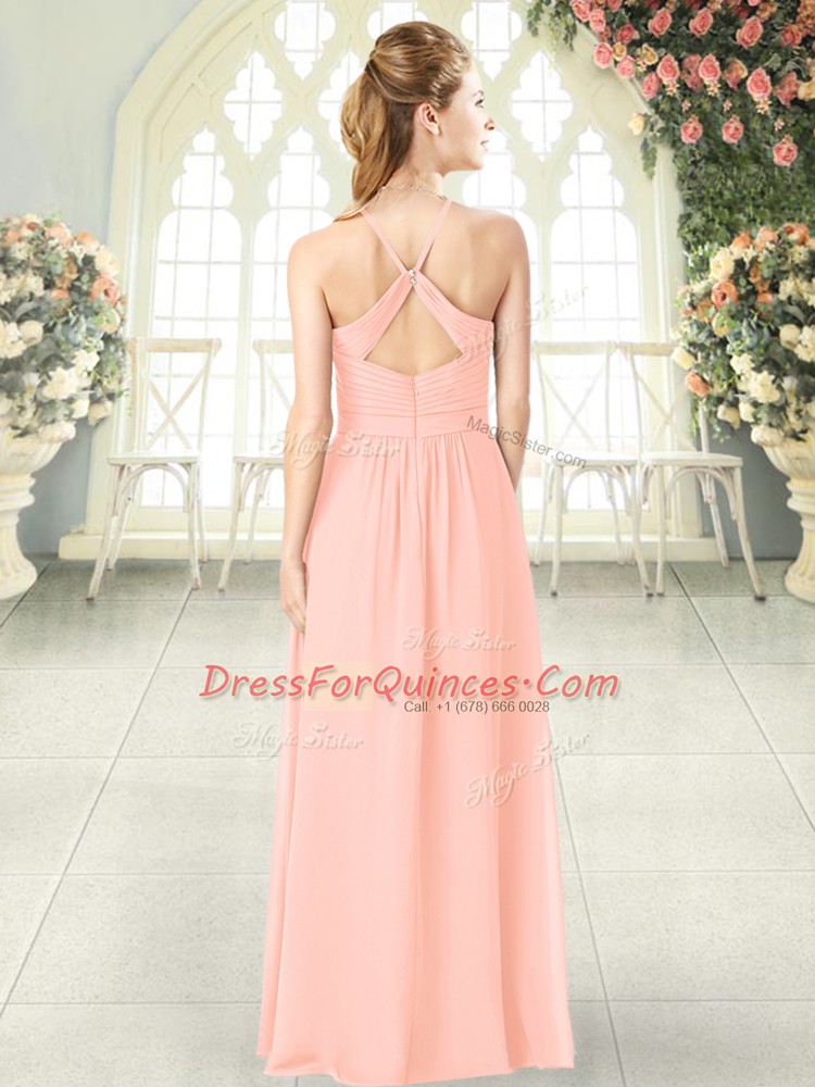 Attractive Pink Halter Top Criss Cross Ruching Juniors Party Dress Sleeveless