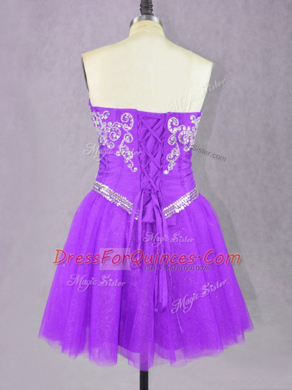 Beading Party Dress for Toddlers Lilac Lace Up Sleeveless Mini Length