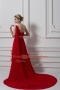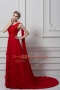 Beauteous Red Chiffon and Tulle Lace Up One Shoulder Sleeveless Custom Made Watteau Train Ruching and Hand Made Flower