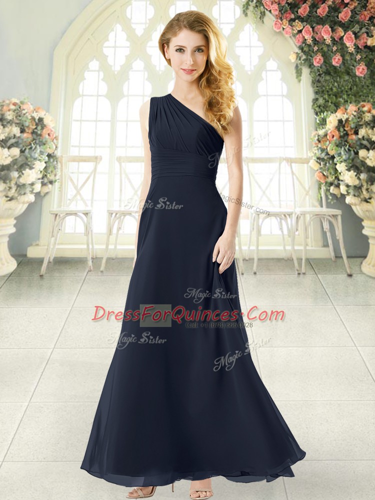 Captivating Black Chiffon Side Zipper Party Dress for Girls Sleeveless Ankle Length Ruching