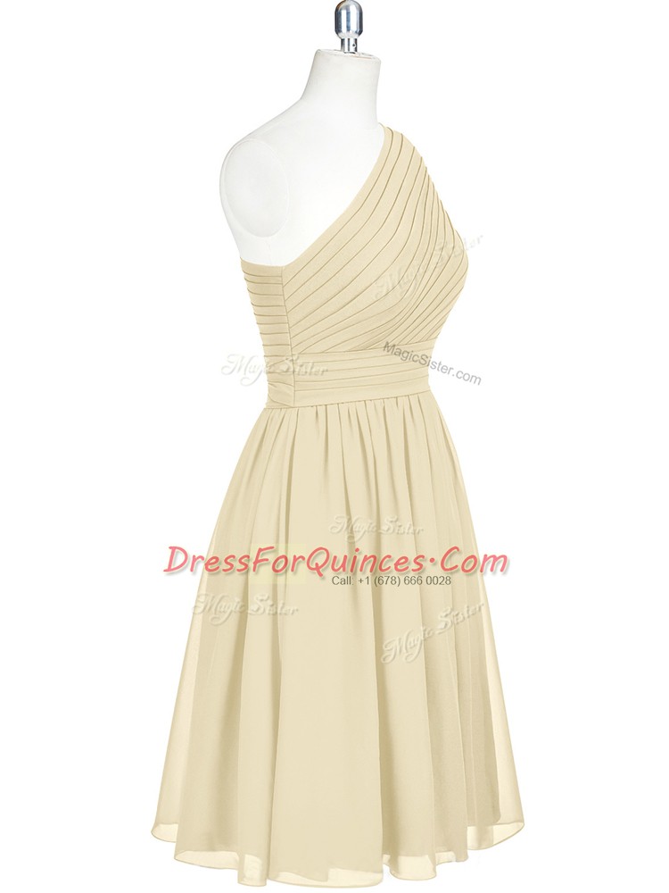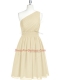 Champagne A-line Chiffon One Shoulder Sleeveless Belt Mini Length Zipper Party Dress for Girls