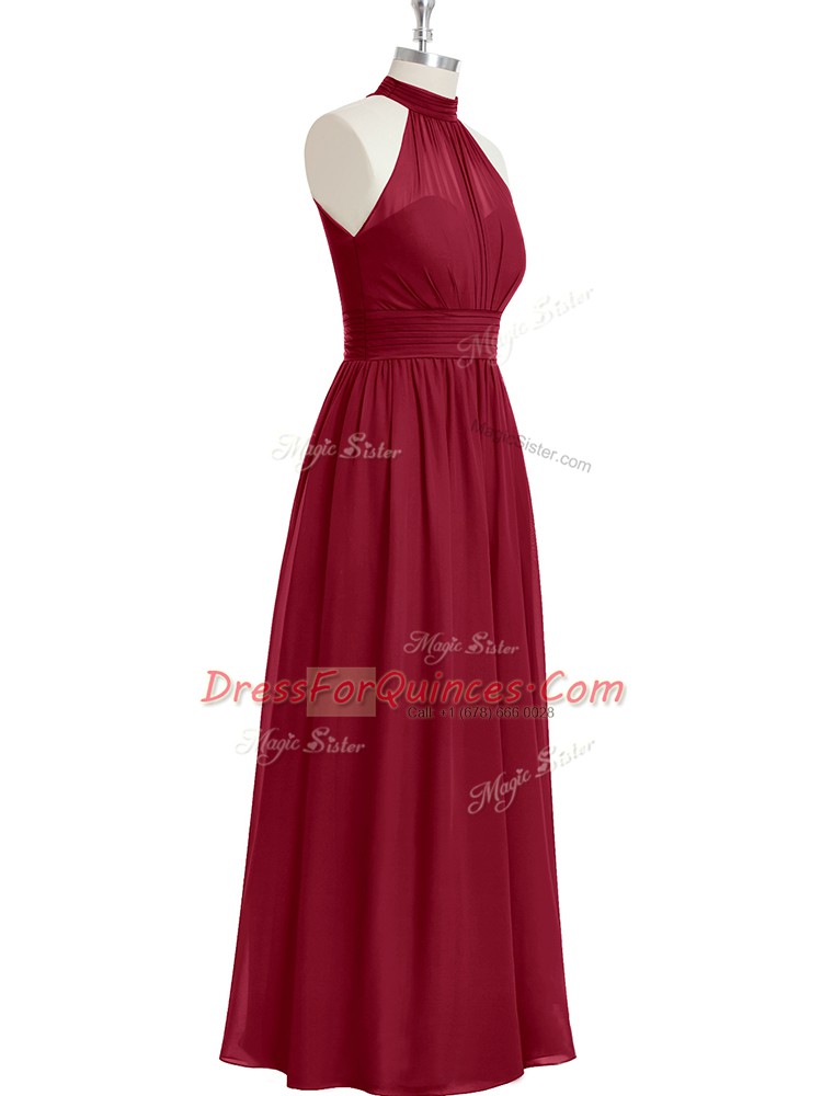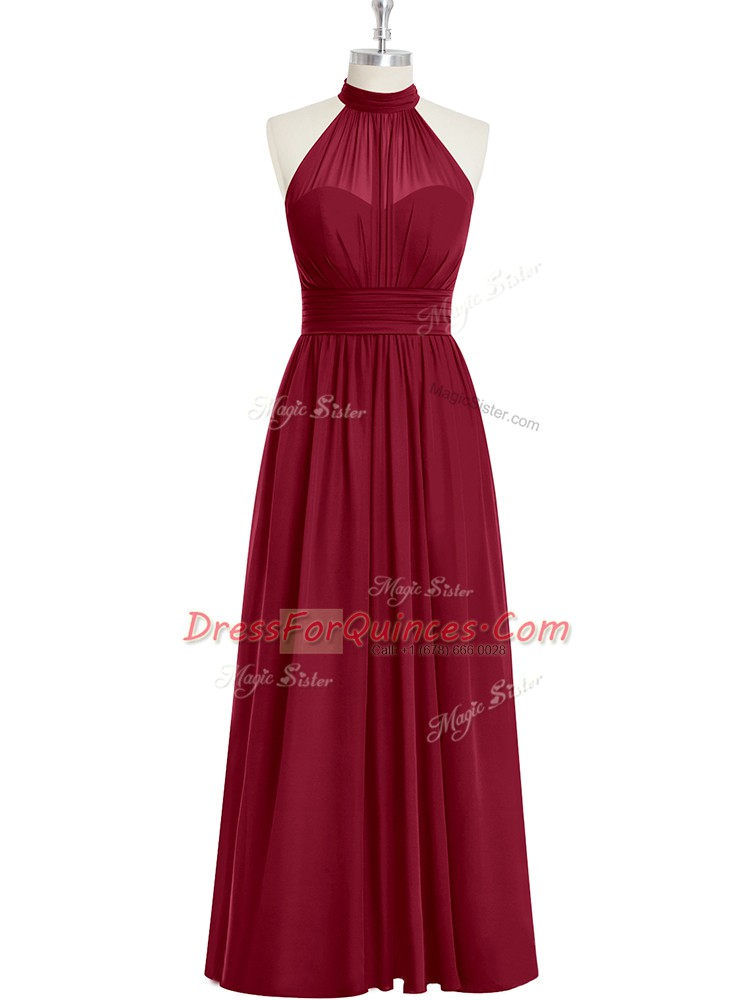 Chic Floor Length A-line Sleeveless Burgundy Party Dress Wholesale Side Zipper