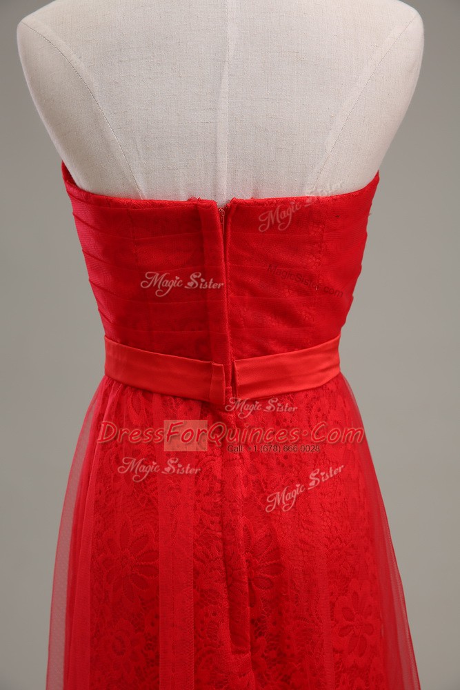 Cute Sleeveless Zipper Floor Length Ruching and Belt Party Dress for Girls