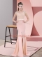 Dazzling Sleeveless Beading and Lace Zipper Party Dresses with Peach Sweep Train