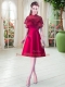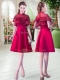 Decent Satin Short Sleeves Knee Length Party Dress and Lace