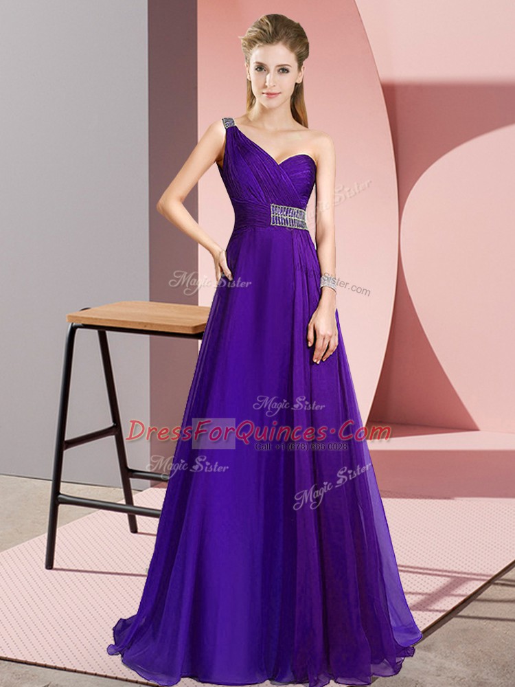 Designer Purple Empire Chiffon One Shoulder Sleeveless Beading Criss Cross Party Dress Brush Train