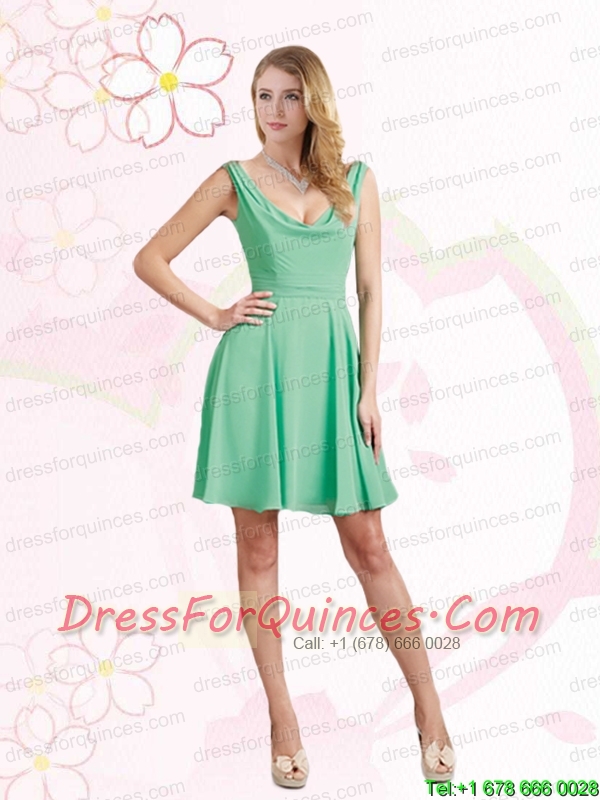 Empire Ruching 2015 Apple Green Mini Length Christmas Party Dress with V Neck