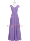 Enchanting Lavender Chiffon Zipper Teens Party Dress Cap Sleeves Floor Length Lace