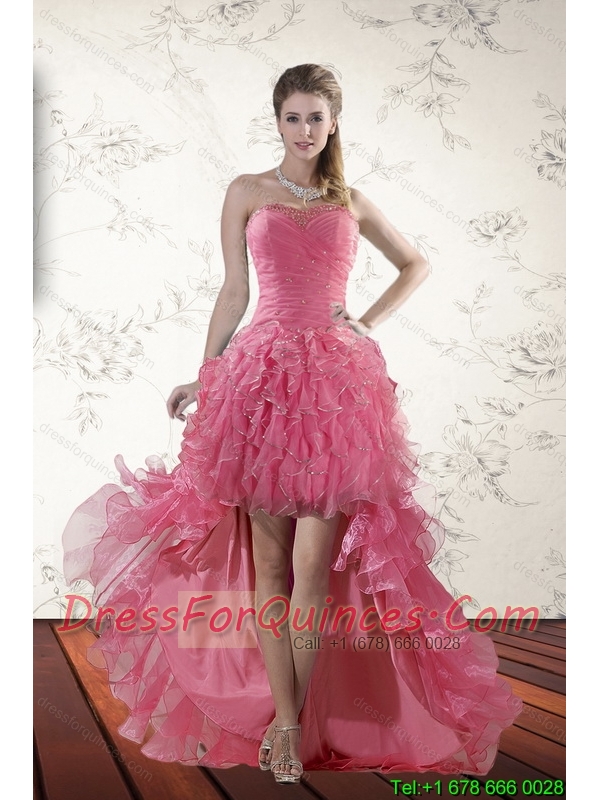 Exclusive Beaded High Low 2015 Christmas Party Dresses with Ruffles