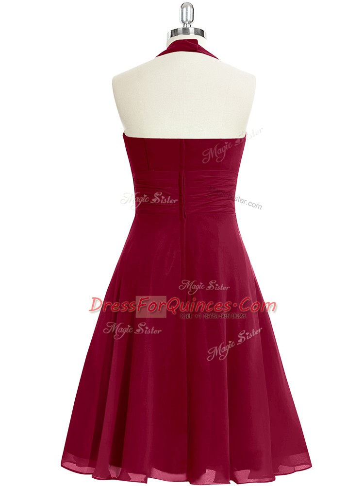 Gorgeous Burgundy Chiffon Zipper Party Dress Wholesale Sleeveless Knee Length Ruching