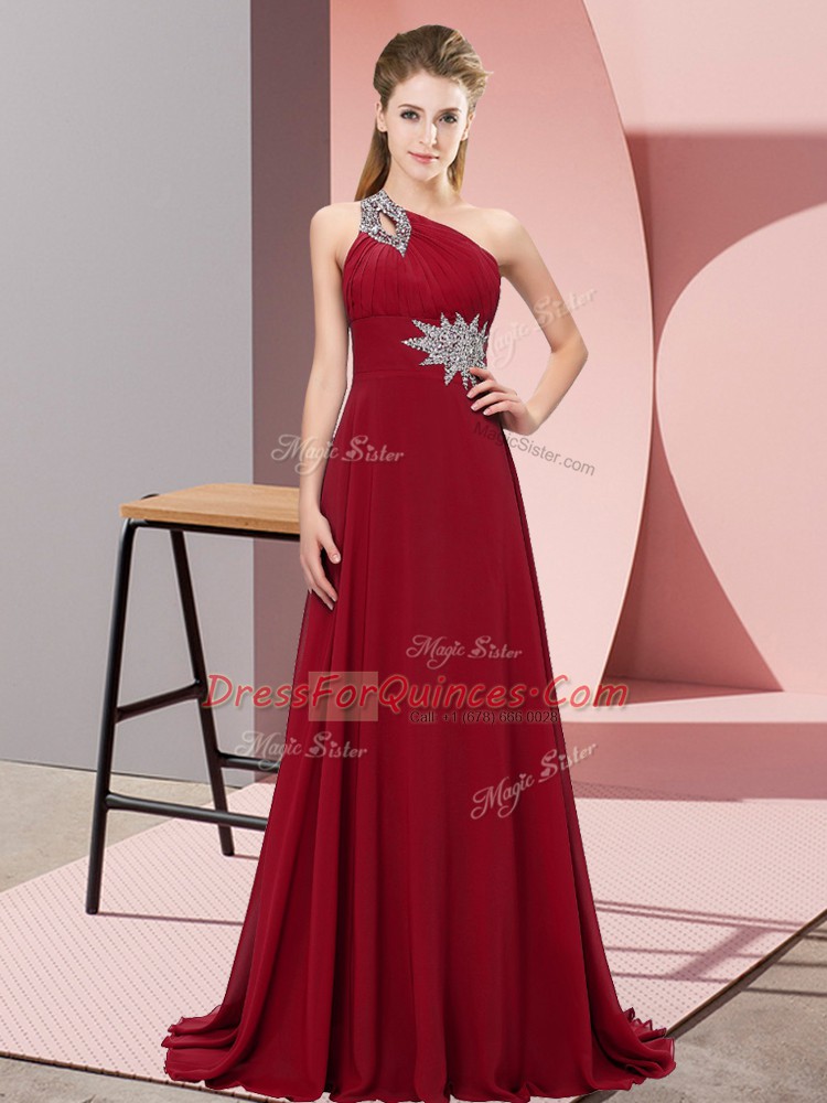 Great Sleeveless Brush Train Lace Up Beading Party Dress Wholesale
