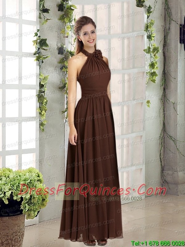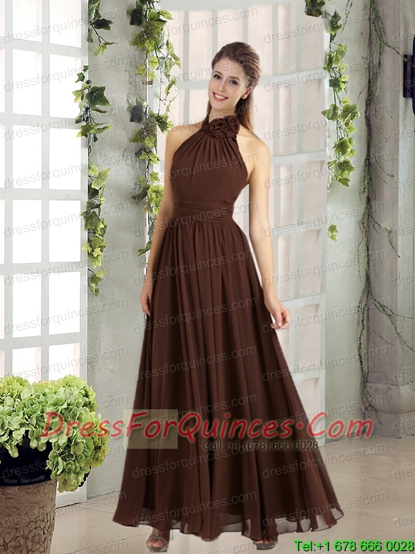 Halter Ruching Empire Hand Made Flowers 2015 Christmas Party Dress