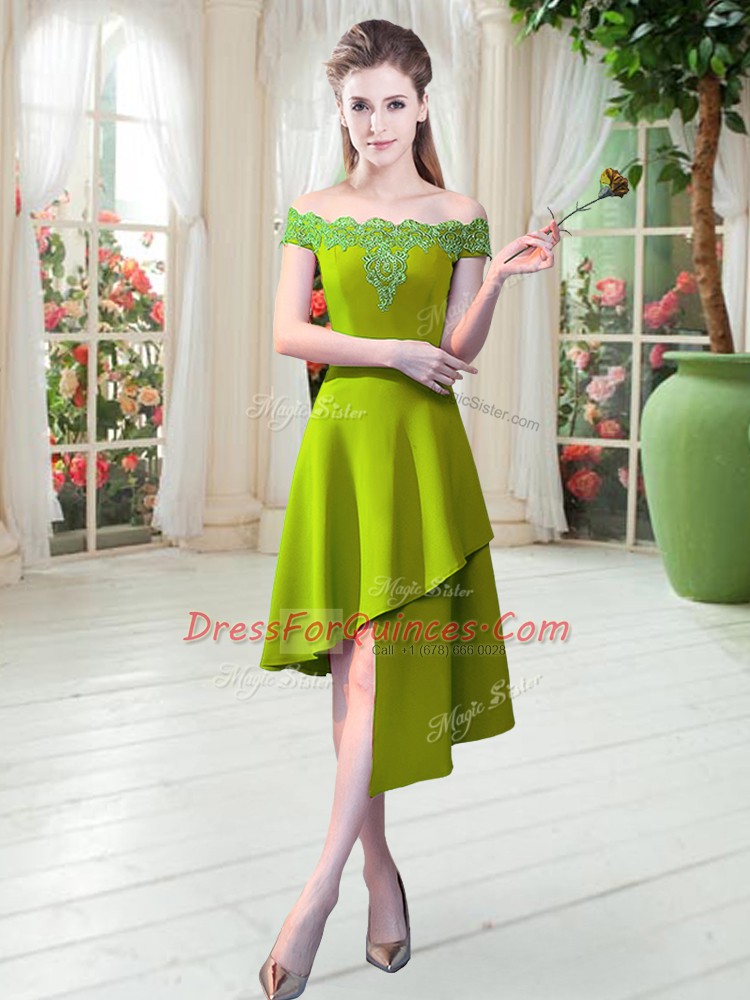 Light Yellow Off The Shoulder Zipper Appliques Party Dress for Toddlers Sleeveless