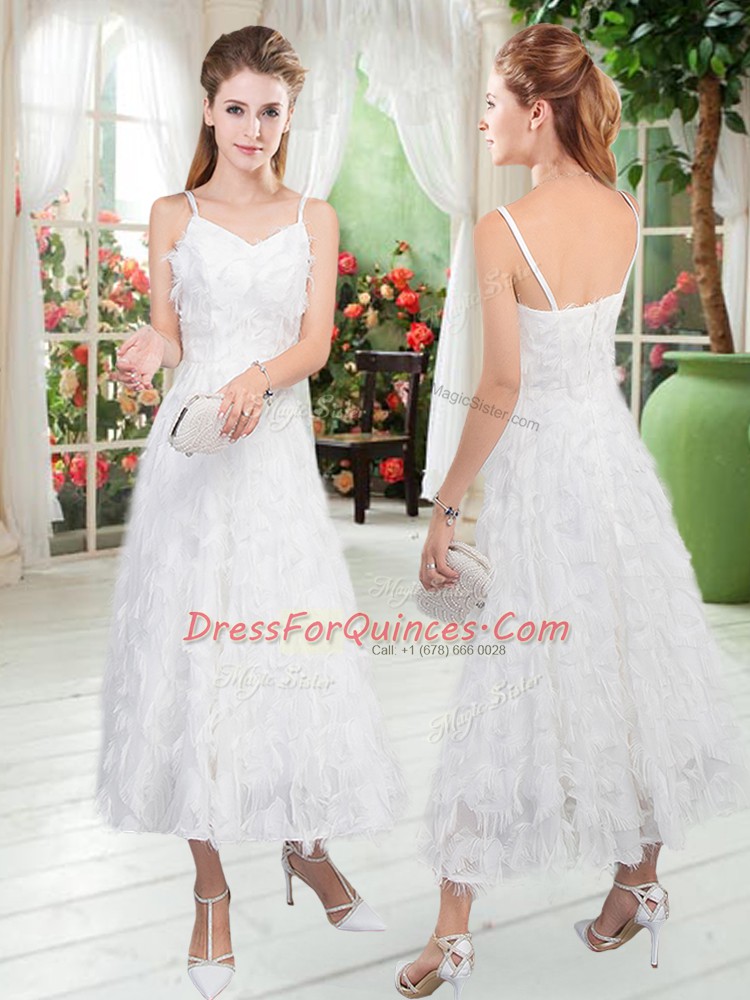 Low Price A-line Party Dress White Straps Sleeveless Tea Length Zipper