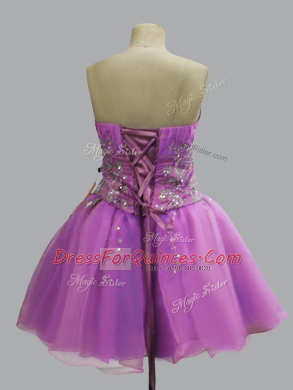 Mini Length Lilac Party Dresses Organza Sleeveless Beading