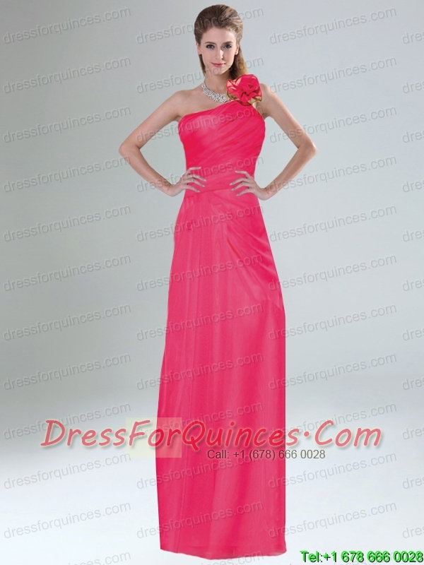 One Shoulder Floor Length Christmas Party Dresses with Hand Made Flowers