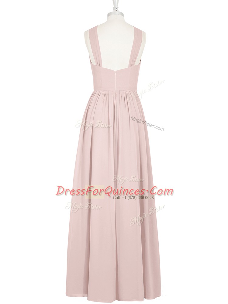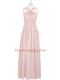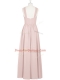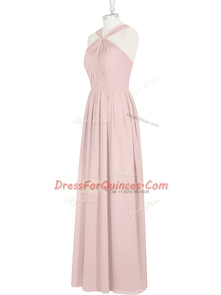Pink Empire Chiffon Halter Top Sleeveless Pleated Floor Length Zipper Casual Dresses