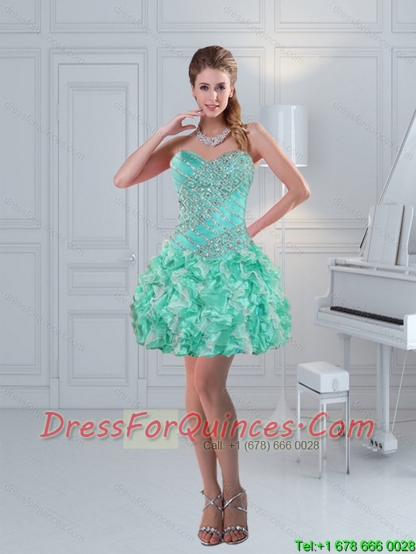 Pretty High Low Sweetheart Ruffled Christmas Party Dresses in Apple Green with Beading