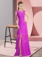 Sleeveless Chiffon Floor Length Zipper Womens Party Dresses in Fuchsia with Beading