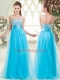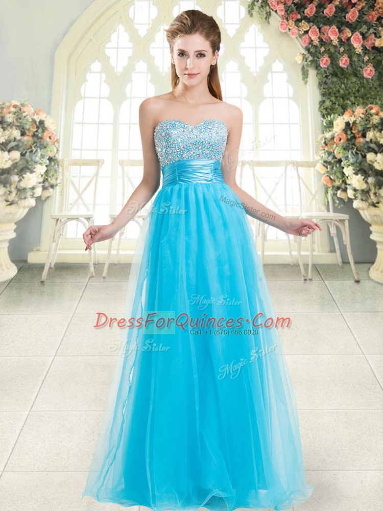 Spectacular Aqua Blue Sleeveless Beading Floor Length Party Dress Wholesale