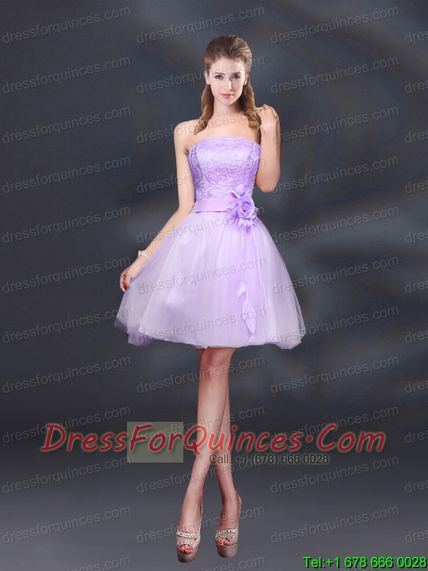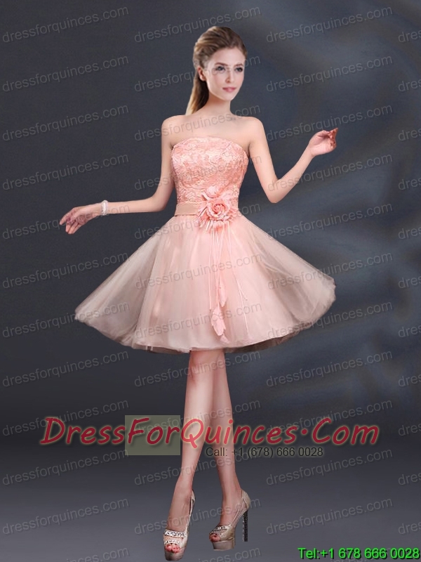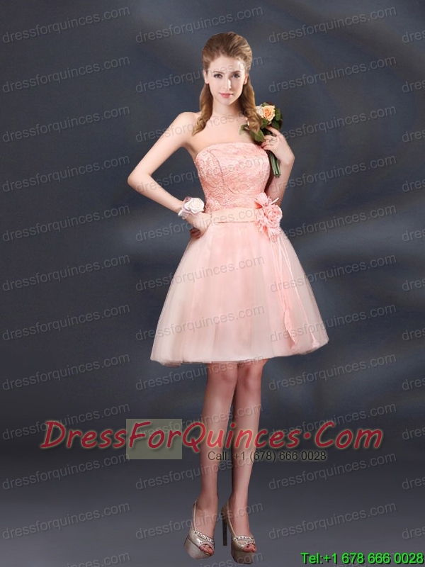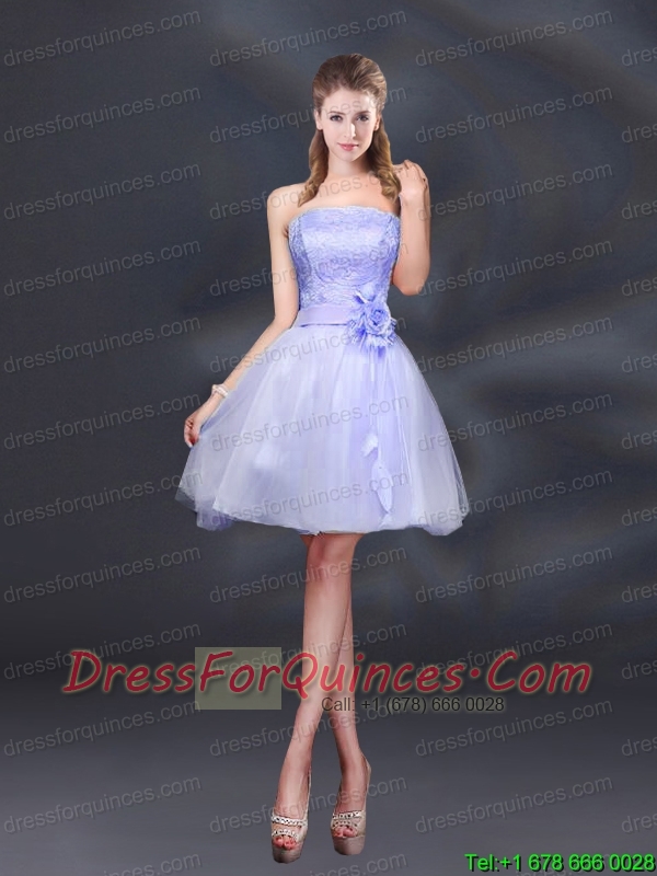 Strapless A Line Hand Made Flowers Christmas Party Dress for 2015