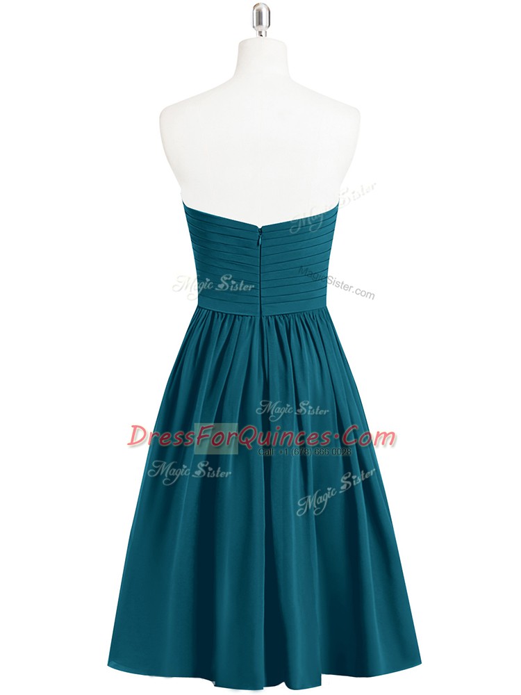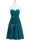 Teal A-line Sweetheart Sleeveless Chiffon Knee Length Zipper Pleated Womens Party Dresses