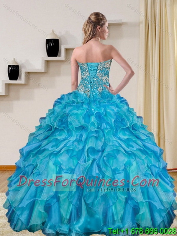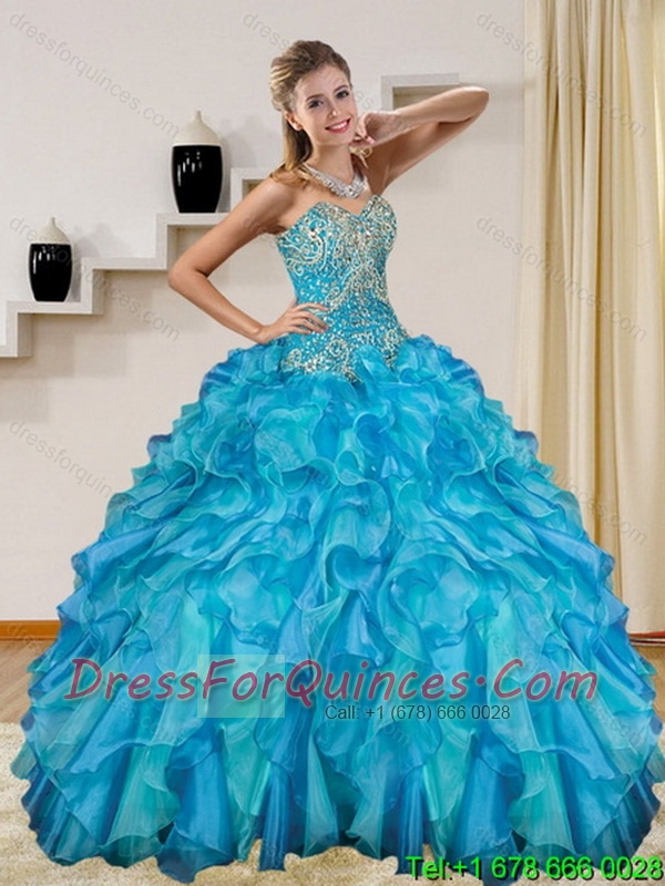 2015 Classical Baby Blue Quince Dresses with Beading and Ruffles